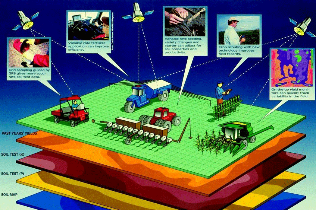 • Precision farming:Precision agriculture is a farming concept that makes available geographical information to better understand and determine field variability to ensure the best possible use of a farmer’s inputs and thus maximize the output from a farm. With the use of GIS, it is now possible for farmers to more accurately determine what inputs their fields require, where exactly it is required and in what quantities.Source: GPS4Us.This information facilitates farmers to efficiently use certain expensive resources such as pesticides, herbicides, and of course, fertilizers. It also ensures more effectual use of water. Farmers who use GIS technology in precision farming can easily increase their farm’s yields along with lowering their operating costs. Hence, it increases their overall profits.